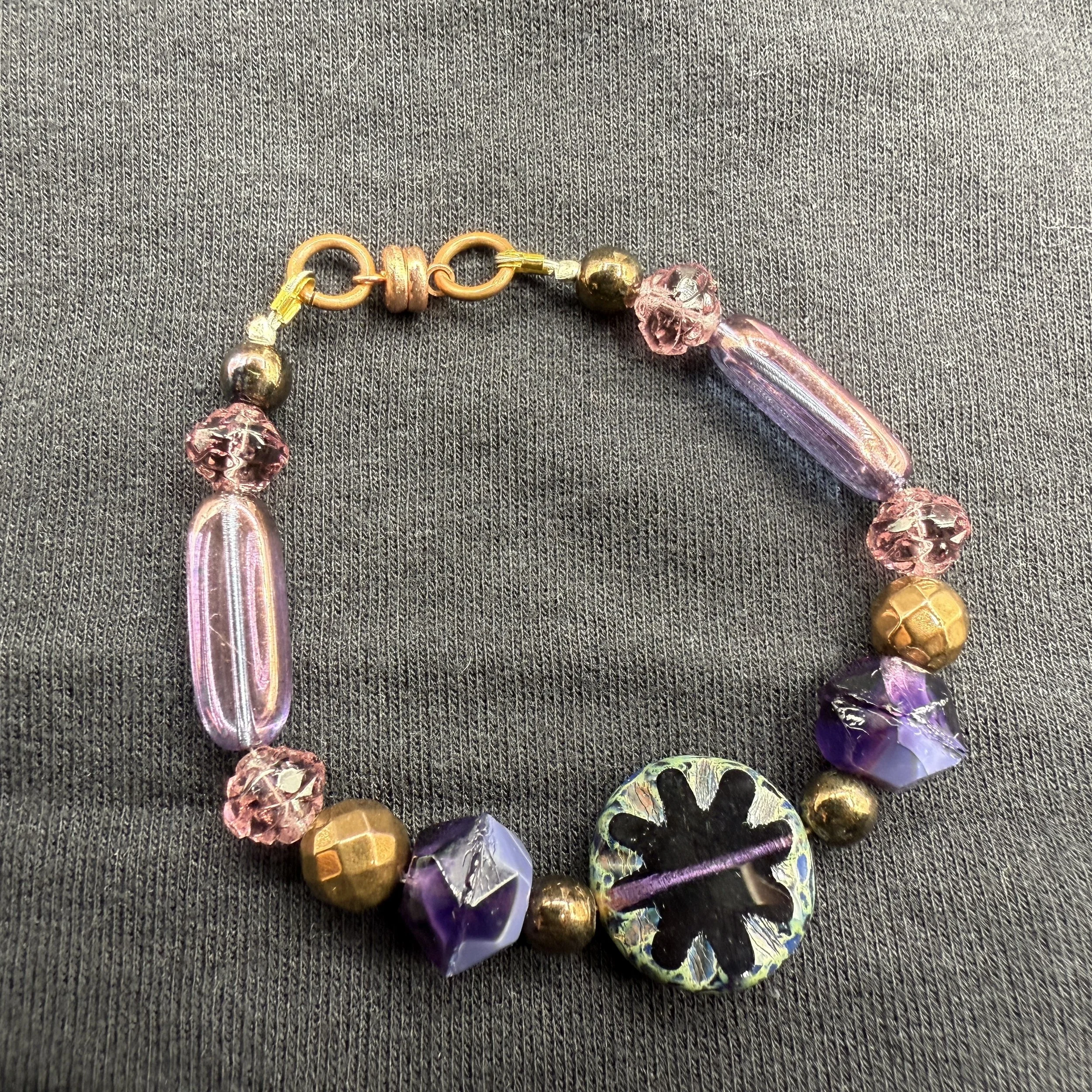 Shop Membership › Amethyst and bead bracelet Image 1 of 2 Image 2 of 2 Amethyst and bead bracelet $70.00 Amethyst beads mixed with a beautiful blend in this bracelet. Add To Cart Added! Amethyst beads mixed with a beautiful blend in this bracelet.